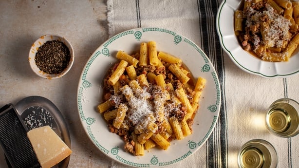 Pasta con salchicha triturada de Donal Skehan