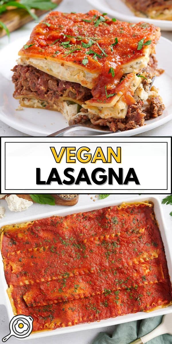 Esta fácil lasaña vegana es una receta reconfortante, sin carne y sin lácteos, hecha con tofu ricotta, lentejas y una rica marinara para una sabrosa comida a base de plantas.