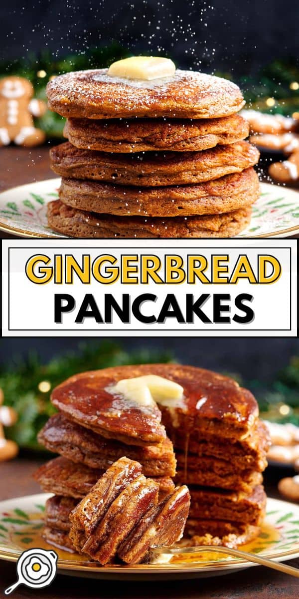 ¡Haz que tus mañanas sean festivas con esta receta de panqueques de jengibre! Una pila rápida y acogedora llena de especias cálidas y el clásico sabor a pan de jengibre.