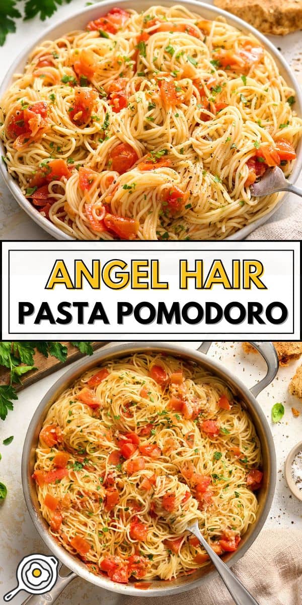 Angel Hair Pasta Pomodoro es una receta fácil de pasta entre semana con tomates, aceite de oliva y hierbas mezcladas con delicados fideos que se cocinan en solo 2 minutos.